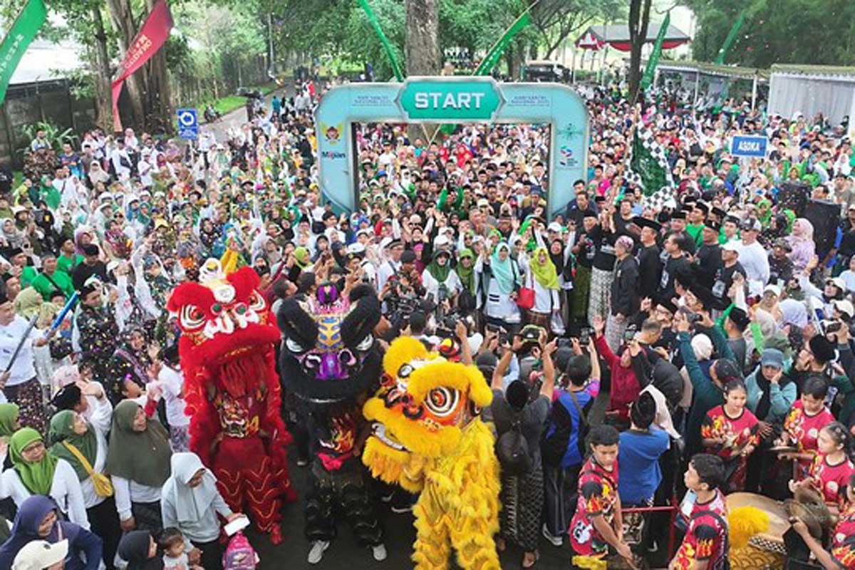 Foto: Ribuan santri dan warga Kota Kediri tumpah ruah antusias mengikuti Jalan Sehat Santri Sarungan. Minggu (2/11/2025).